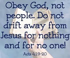 The Bible says in Acts 4:19 New American Bible as Peter and John spoke before the high priests: Peter and John, however, said to them in reply, “Whether it is right in the sight of God for us to obey you rather than God, you be the judges.