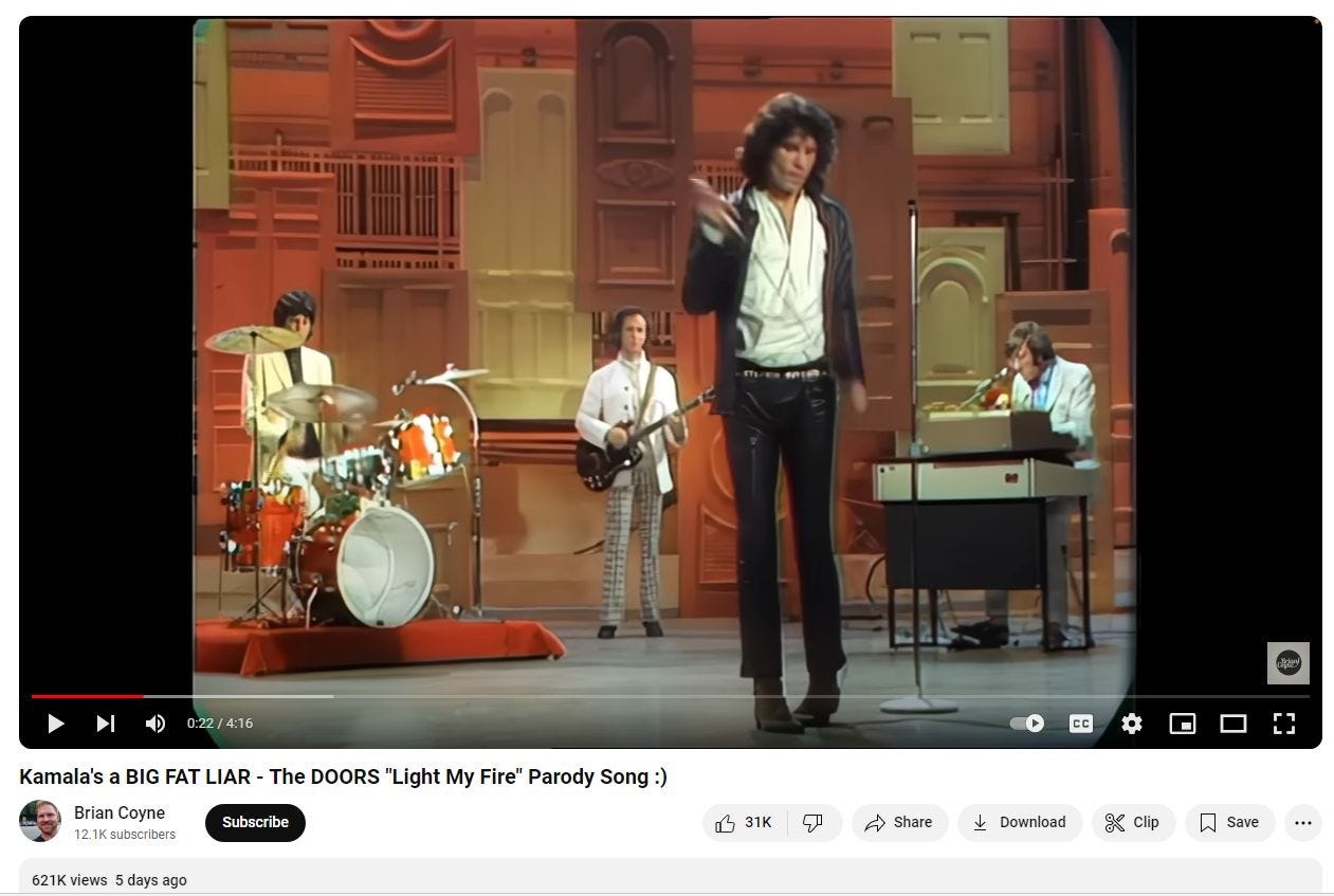 Plus much much more like a great parody video Kamala's a BIG FAT LIAR - The DOORS "Light My Fire" Parody Song